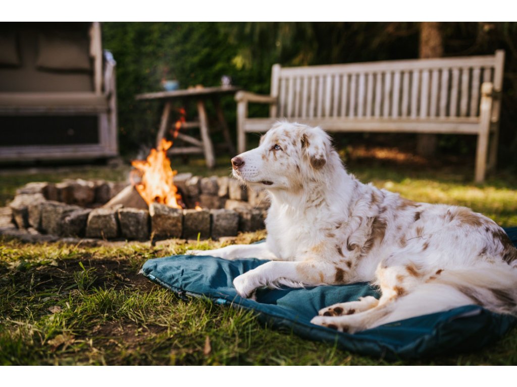 Outdoorový pelíšek pro kempování ve formě lehké a skladné podložky izoluje před vlhkostí i chladem, aby měl pes poholí i při nocování pod stanem nebo pod širákem.
