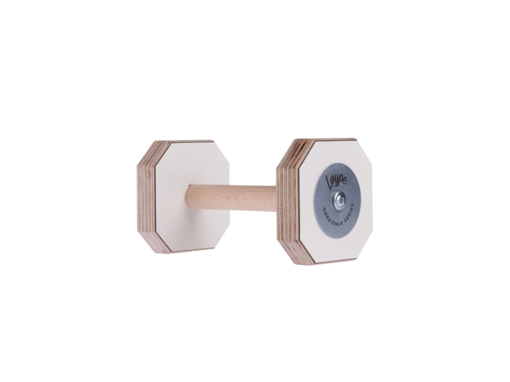 Aportovací činka najde využití při tréninku obedience či na zkoušky, ale můžete ji využívat i rekreačně během společných chvil se psem. Střed činky je z odolného dubového dřeva, který pod tlakem psích čelistí jen tak nepovolí. Povrch je laminovaný a nikoliv barvený, takže nepouští barvu a má delší životnost. Tato celodřevěná činka je vhodná pro psy, kteří už mají s aportem zkušenosti, neměli by ji totiž nijak kousat, ale pevně držet z tlamě.