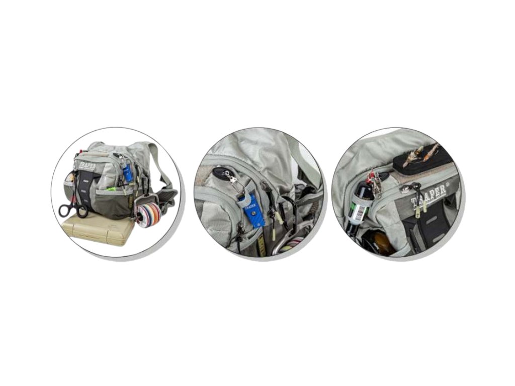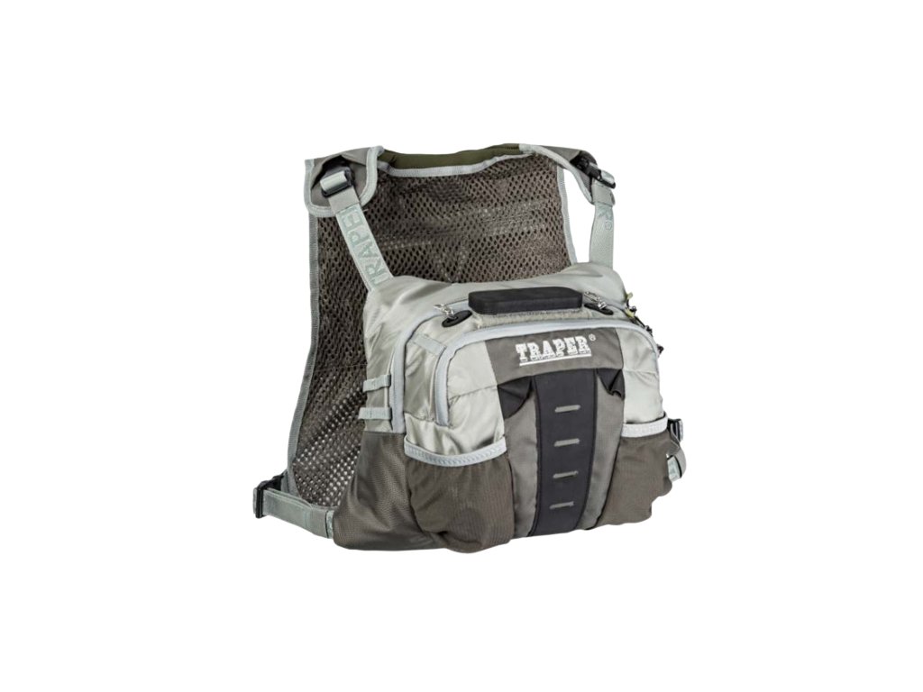 Velmi praktický hrudní batoh je nepostradatelným prvkem při rybářských výpravách.
