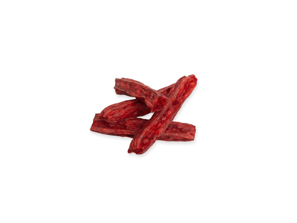 Hovězí pamlsky sušené horkým vzduchem, vhodné na kousání i jako náplň do plnicích hraček. Měkká konzistence je ideální pro štěňata, seniory i psy s citlivými zuby.