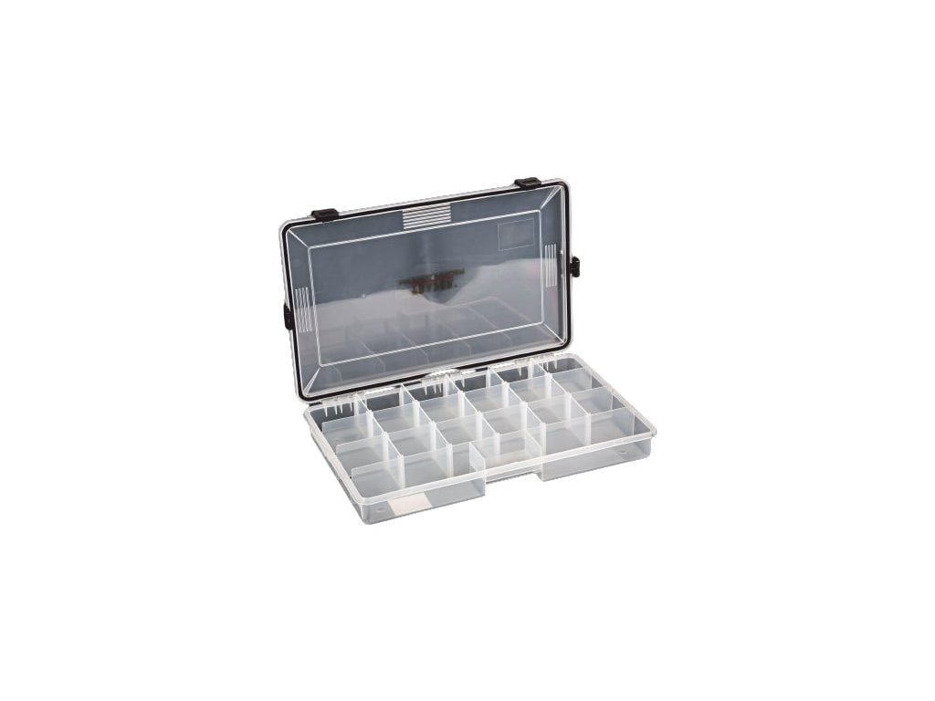 Díky nastavitelným přihrádkám lze box používat pro veškeré příslušenství a krmítka.
