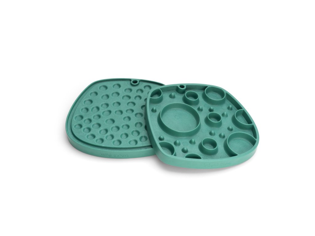 Lízací část se skvěle hodí pro umístění tekutější stravy, třeba kapsiček nebo různých paštik. Opačná strana v podobě protihltací misky se pak hodí i pro granule, ale můžete je zkombinovat s jakoukoliv další potravou, na níž je váš čtyřnohý parťák zvyklý. Podložku můžete dát i do mrazáku a za několik hodin máte hotovou osvěžující pochoutku pro horké letní dny, která psa na pěknou chvíli zabaví. Po použití lze umývat i v myčce.