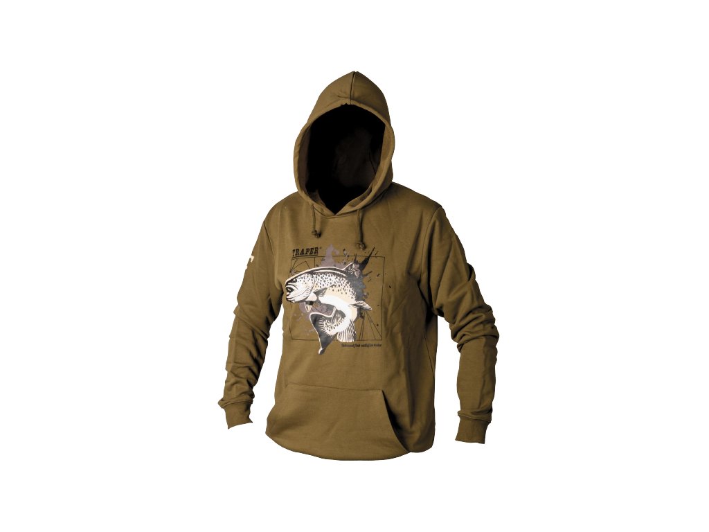 Klasická bavlněná mikina s designovým potiskem pstruha.