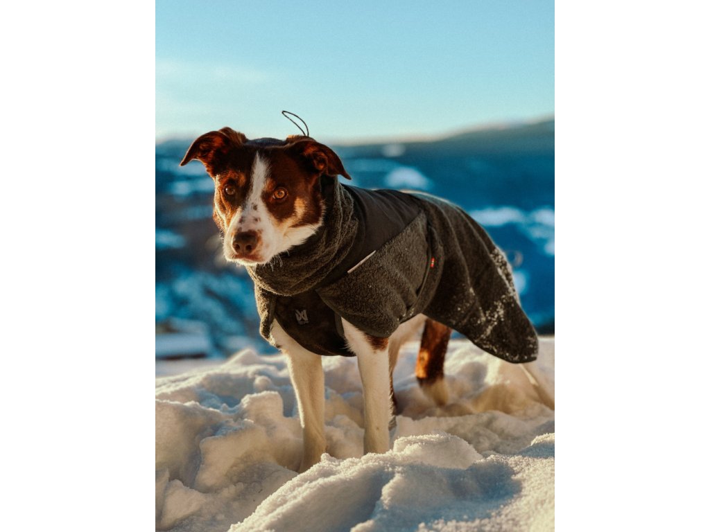 Vynikající vlastnosti merino vlny a odolnost polyesteru: to je bunda Wool dog jacket. Merino vlna je přírodní vlákno, které je velmi populární pro své termoregulační vlastnosti: absorbuje vlhkost, aniž by chladlo nebo navlhlo. Díky tomu nezadržuje zápach a skvěle udržuje komfortní teplotu. Kombinace s polyesterem zase zvyšuje odolnost bundy a urychluje schnutí. Místa vystavená opotřebení jsou navíc vyztužena sofshellem. Non-stop dogwear navrhuje psí bundy tak, aby respektovaly jejich přirozený pohyb, ale zároveň pomáhaly se správnou regenerací velkých svalových partií a udržely psa v teple, i když je vystaven nepříznivým venkovním podmínkám. Bundu také můžete psovi velikostně přizpůsobit pomocí stahovací přezky kolem beder a gumiček na krku i u kořene ocasu. Pružné popruhy u zadních nohou slouží k tomu, aby bunda držela na svém místě, i když fouká vítr.