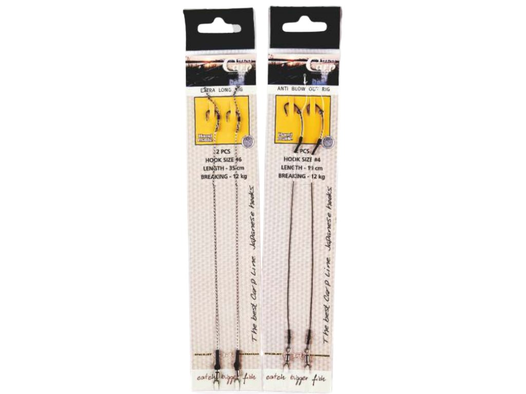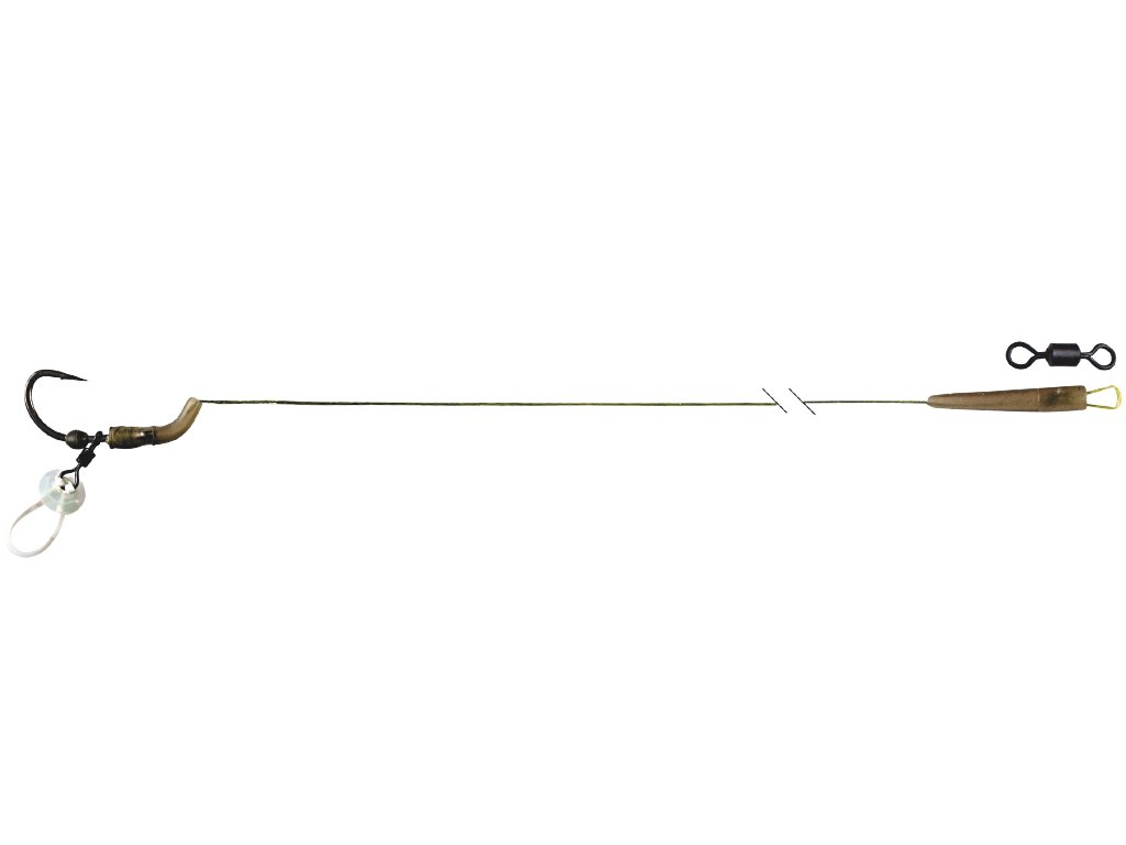 Klasický návazec vybavený úhlovým nástavcem, to zajišťuje jistý zásek. Na háčku je stoper pro dokonalé umístění nástrahy. Vlas je elastický a zakončený stoperem.