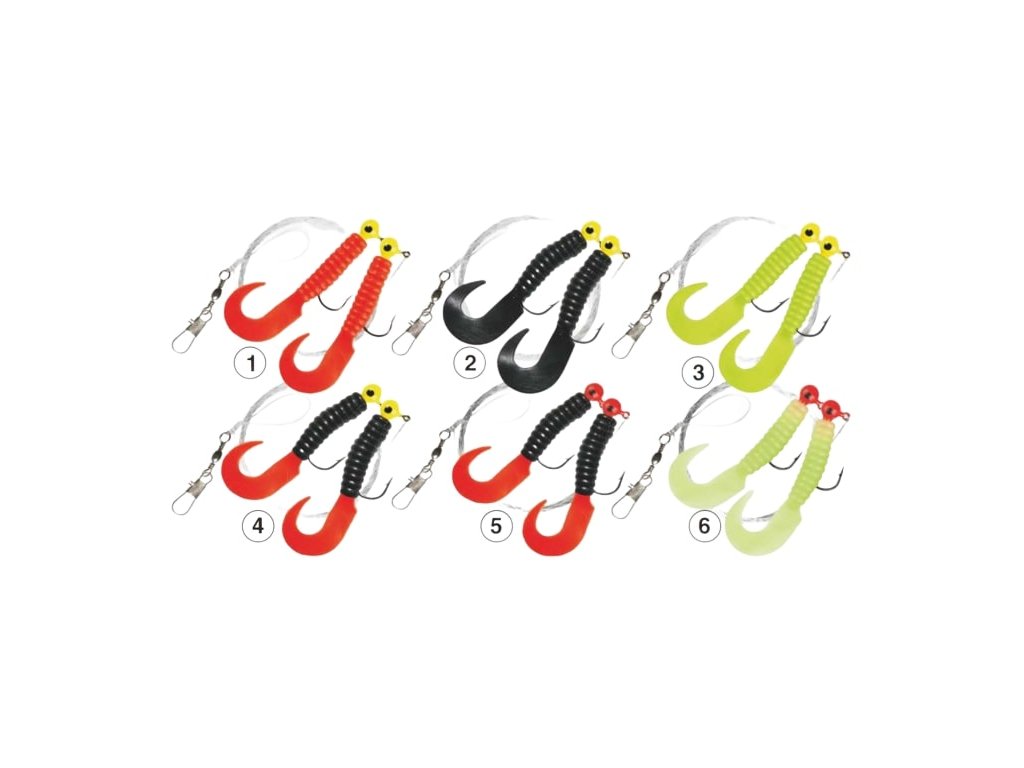Návnada je atraktivnější, protože jigová hlavička je natřena reflexním lakem. Návazce jsou vyrobeny z pružného, mořského monofilu a jsou opatřeny obratlíky a karabinkami odolnými proti slané vodě.
