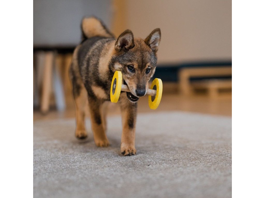 Aportování je komplexní cvik, s nímž je nejlepší začínat od útlého psího věku. Abyste mohli s tréninkem začít hravou formou a ukotvili základy už od štěněte, vytvořili jsme psím juniorům na míru činku Pupeek. Je akorát velká, příjemně lehká a tichoučká. Má kulaté bočnice, aby se při dopadu kutálela, což ve štěňatech podporuje lovecký pud a mají o to větší chuť za činkou běžet. Středová tyčka je z velmi pevného dubového dřeva, na němž ostré štěněčí zoubky nadělají co nejméně škod. Pěnové bočnice jsou lehké a navíc při dopadu nedělají hluk — činku tak můžete házet, štěně jí může pouštět a vše proběhne krásně tiše.
